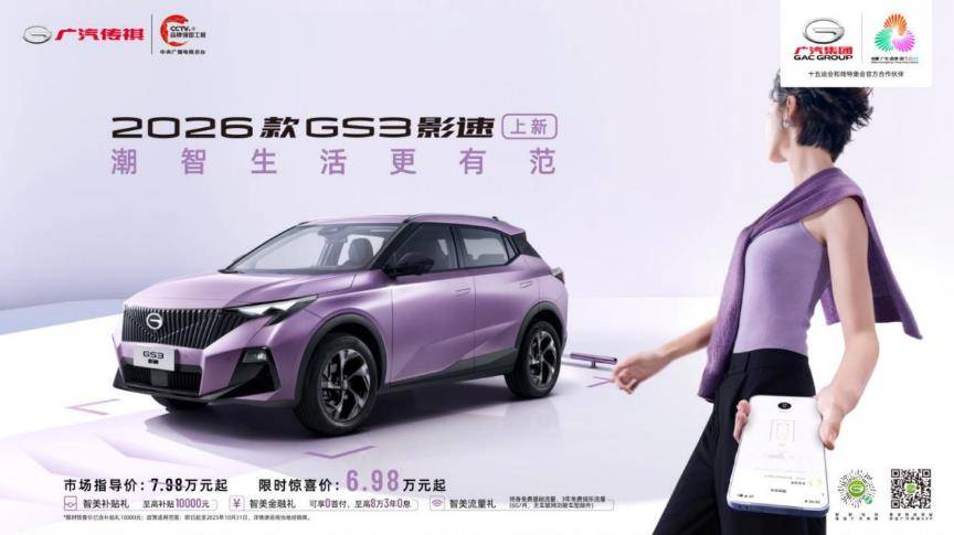 更为重要的是,在配置加码升级的同时,新车价格向下渗透。2026款传祺GS3影速官方指导价为7.98万元-9.98万元,限时惊喜价6.98万元起,并可享0首付、8万3年0息。以“增配价更低”的诚意,真正做到了让用户“不做选择题”,鱼与熊掌可以兼得。它将凭借全面的产品实力,成为用户生活旅途的“全能搭子”,陪伴用户将探索的足迹从熟悉街巷延伸至诗意远方,在每一次出发与抵达之间,开拓更广阔的人生版图。