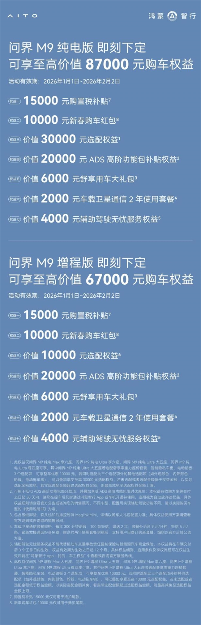 值此新春来临之际,问界M9特别推出多重购车礼遇,至高价值达87000元。新春新程,问界M9将继续秉承智慧重塑豪华理念,不断开创新能源汽车的全新境界,持续引领中国豪华车市场,陪伴更多用户及家庭安心启程、从容归家,共赴美好团圆年。